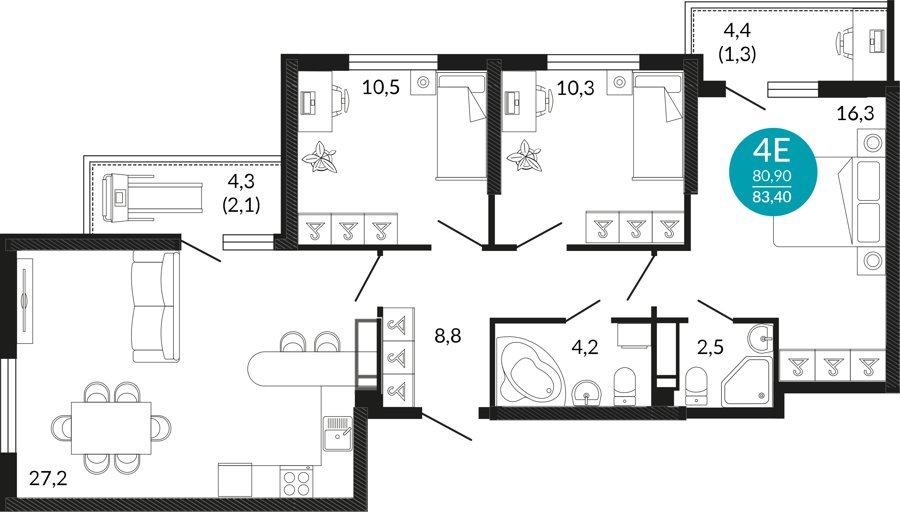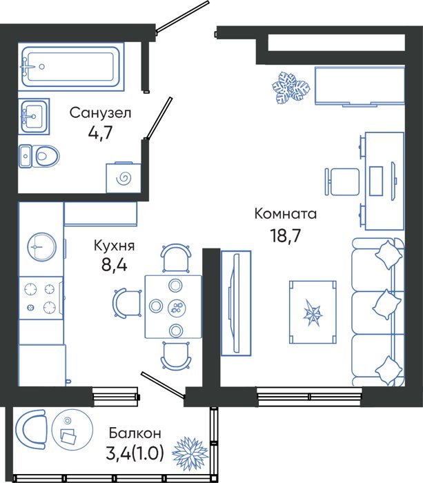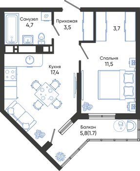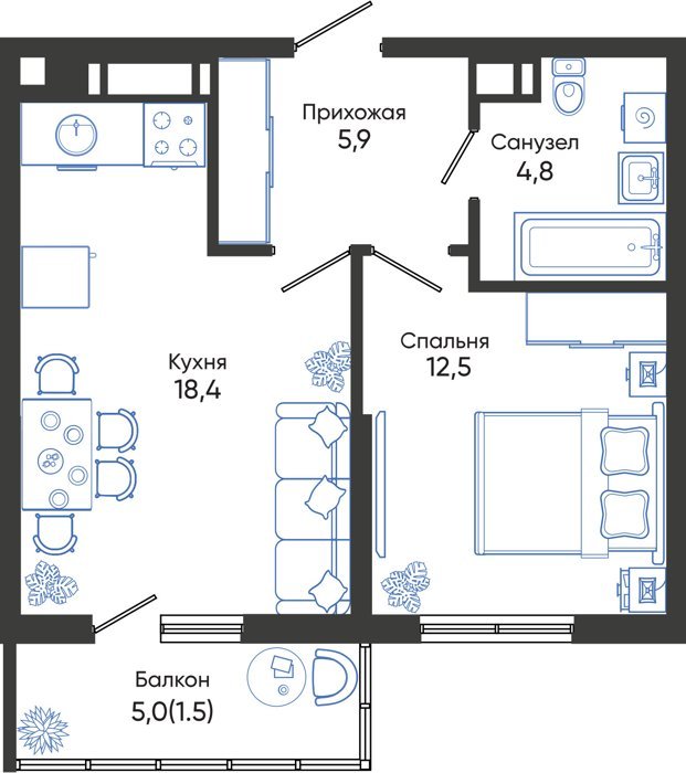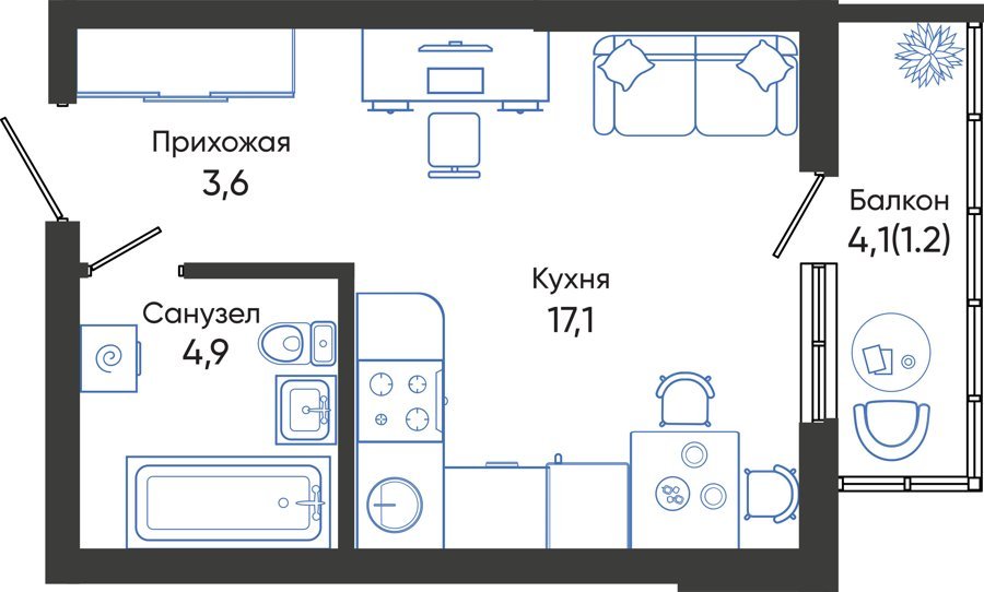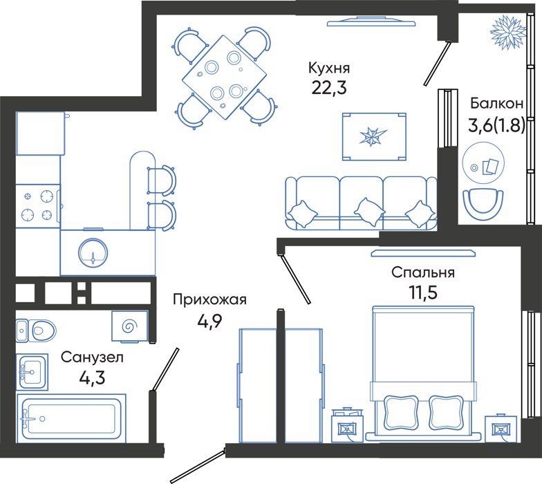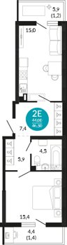 Площадь от 43.5 м2