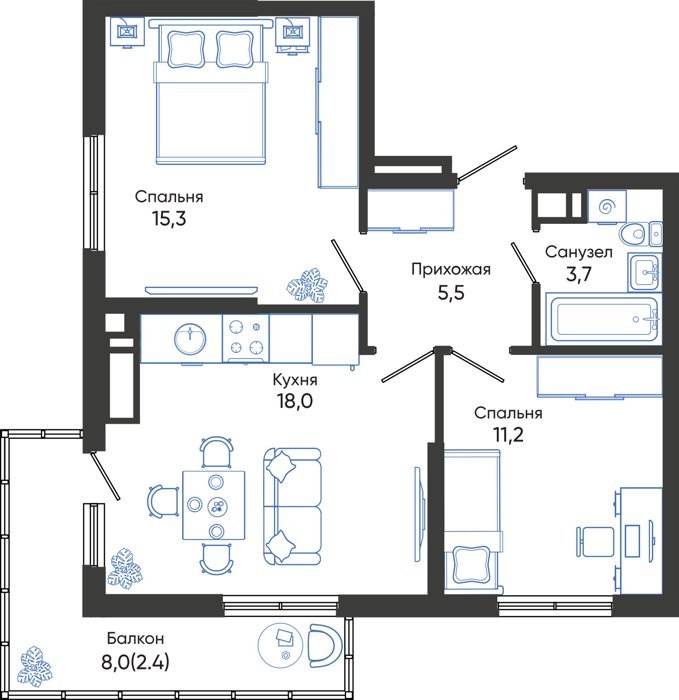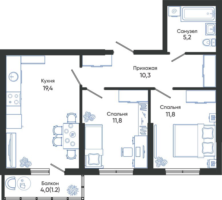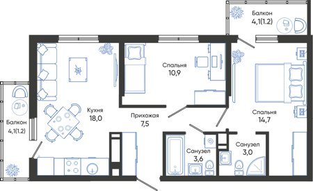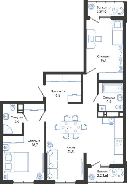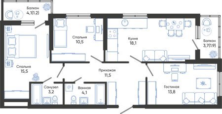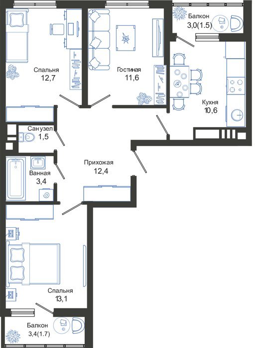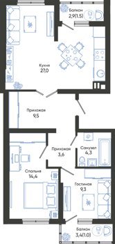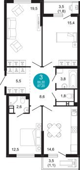 Площадь от 68.5 м2
