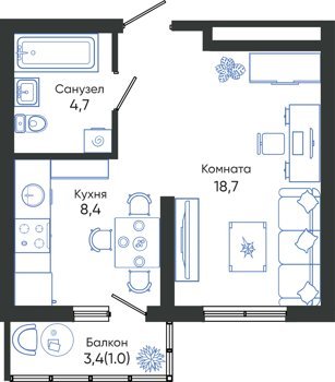 1-комнатные, ЕВРО