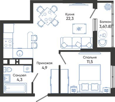 Площадь от 22.1 м2